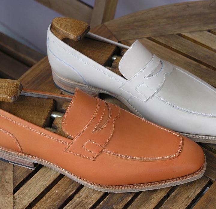 Hand Made Men One Feet Tan And One Feet White Penny Loafer Casual Wear Festival Shoes