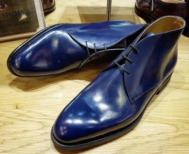 Royal Blue Leather Skin Men Hand Stitch Edition Chukka Boot