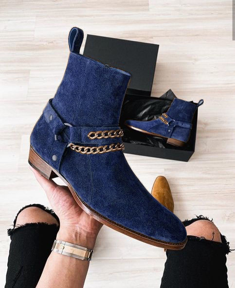 Men's Attractive Color Navy Blue Suede Jodhpurs Buckle Fashion Boot Handmade Edition