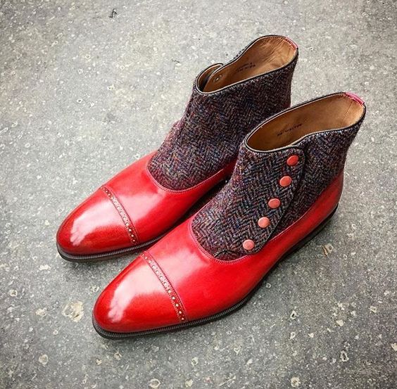 Handmade Men's Red Leather Ideal Contrast Button Fashion Boot