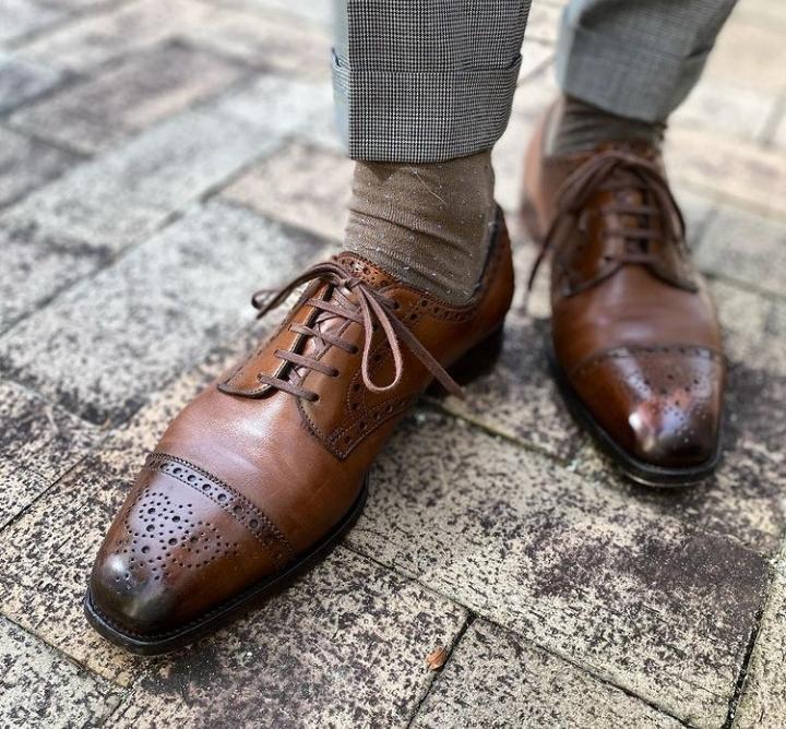 Handmade Two tone Cap Toe Brogue Leather Lace Up Wedding Shoes