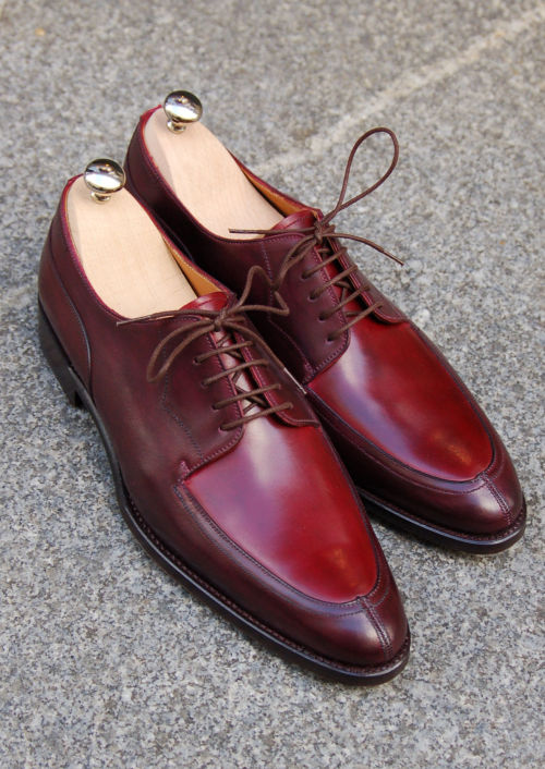 Hot Sale Men's Hand Stitch Burgundy Split Toe Leather Lace Up Shoes