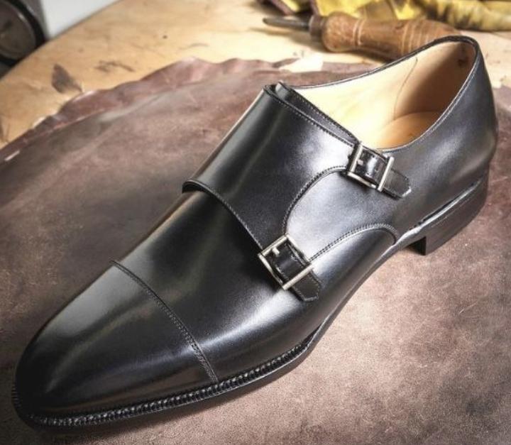 Decent Wear Men's Black Double Monk Strap Genuine Leather Shoes
