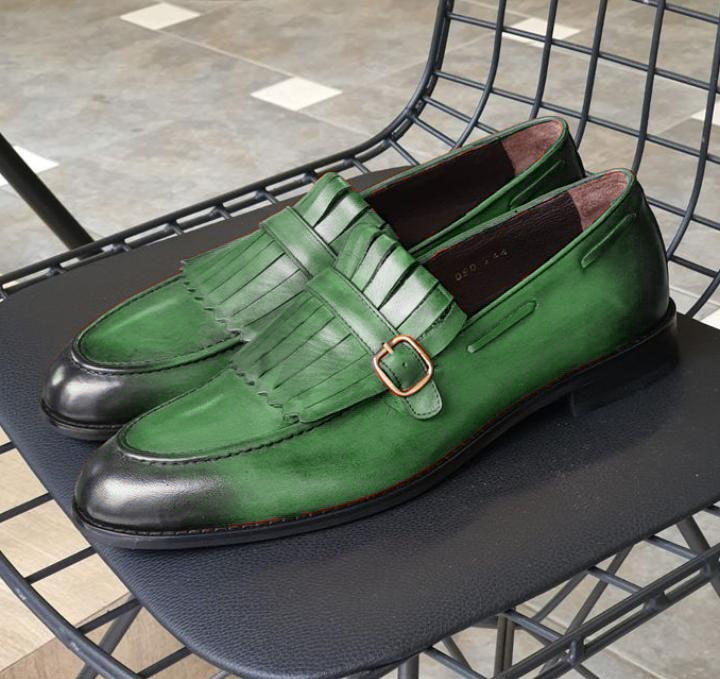 Best Handmade Green Black Fringe Monk Leather Wedding Shoes