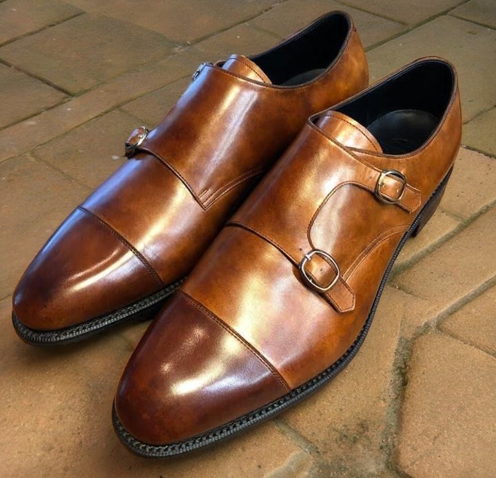 Handmade Brown Formal Wear Double Monk Strap Dress Shoes Men's Double Buckle Shoes Edition