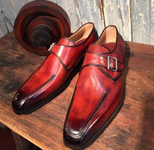 Limited Edition Men's Handmade Two Tone Monk Leather Formal Wear Shoes