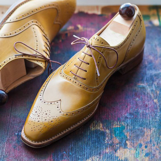 Men Simple Design Outclass Brogue Look Wingtip Oxfords Shoes Handmade Edition