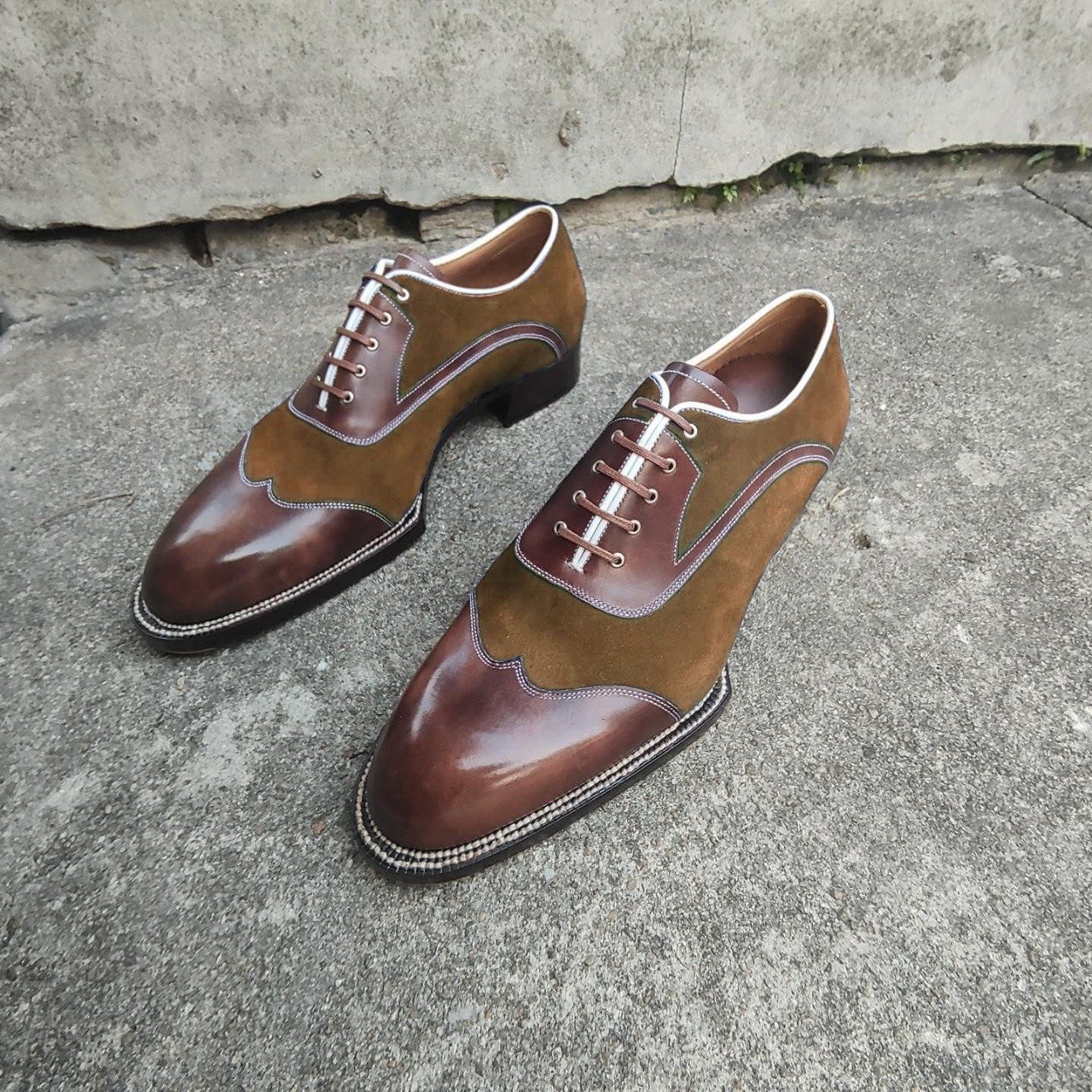 Luxury Hand Made Brown Wingtip Leather Suede Lace Up Formal Wear Shoes