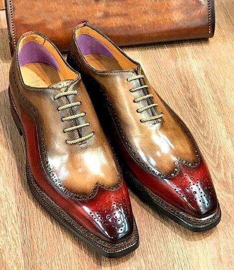 Sale Men's Handmade Brown Rust Tone Genuine Leather Wingtip Dress Shoes
