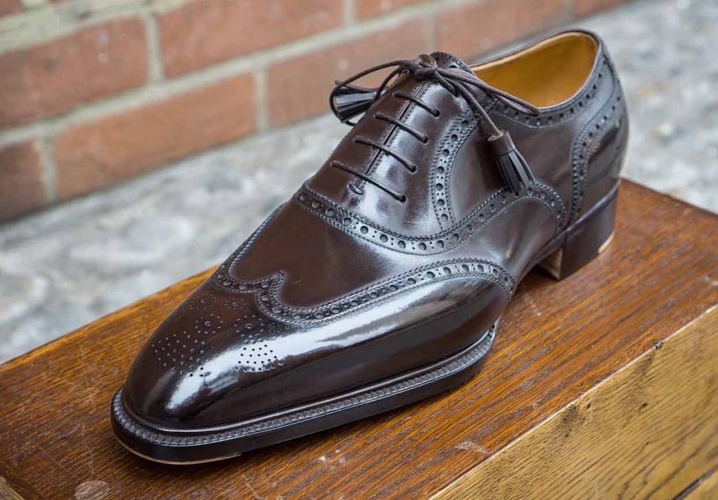 Classic Men's Hand Made Attractive Dark Brown Oxfords Wingtip Leather Lace Up Shoesn