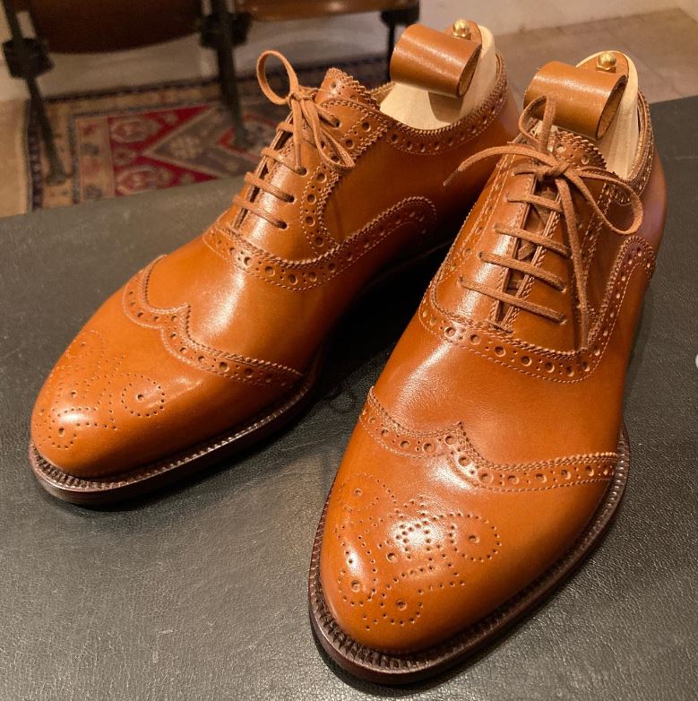 Handmade Brown Leather Italian Edition Wingtip Shoes Material: