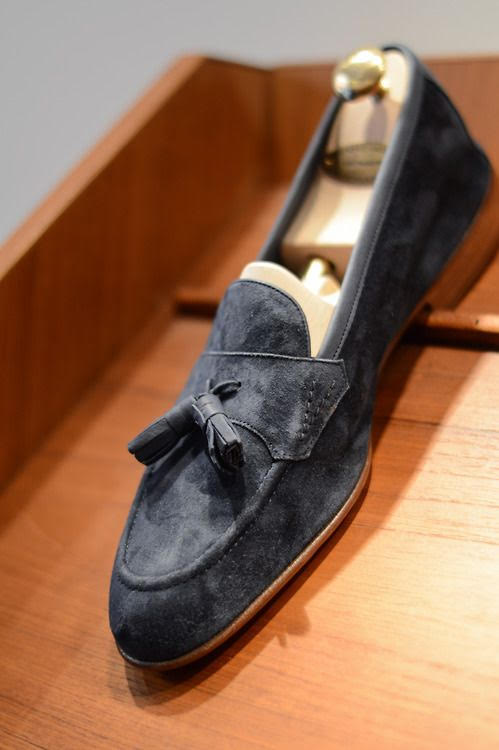 Classic Grey Hand Stitch Tassels Loafer Suede Shoes