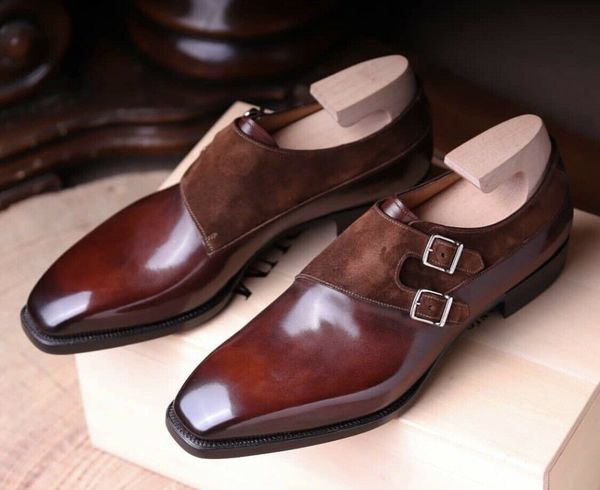 Men Decent Design Double Monk Leather Genuine Formal Shoes