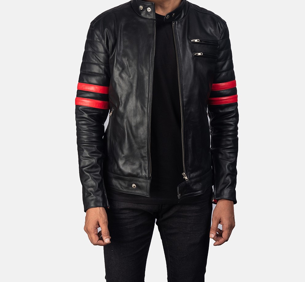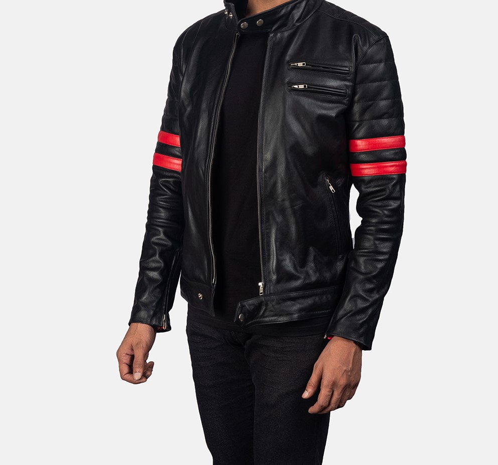 Mens Quilted Sleeve Red Black Decent Fashion Hand Made Stitch Leather Jacket