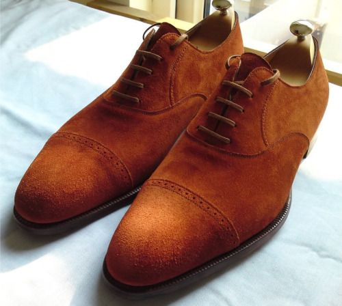 Handmade MEN Classic Oxford Captoe Lace Up Tabaco Suede Fashion Shoes