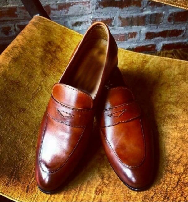 Men's Italian Style Brown Leather Penny Loafer Moccasin Dress Formal Shoes Men Shoes For Wedding