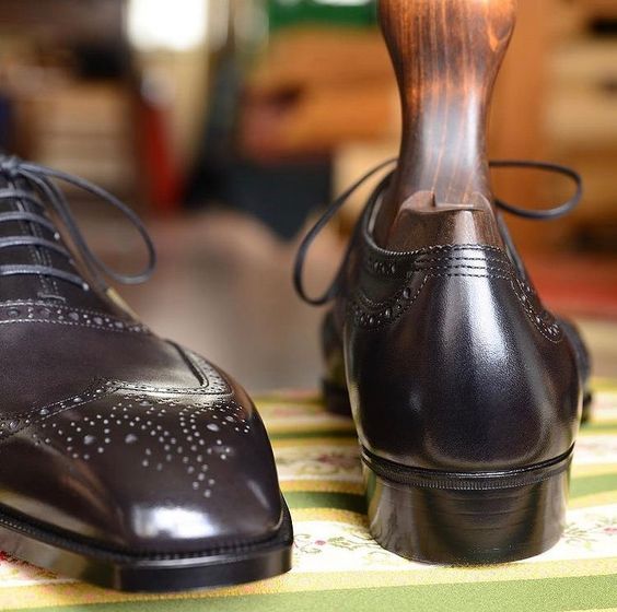 Luxury Handmade Black Wingtip Bespoke Leather Lace Up Wedding Shoes