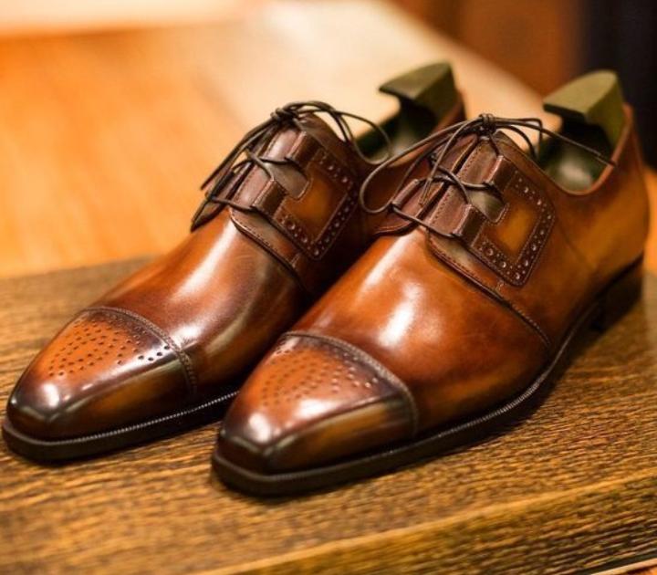 Luxury Handmade Two Tone Leather Shoes, Cap Toe Lace Up Wedding Shoes