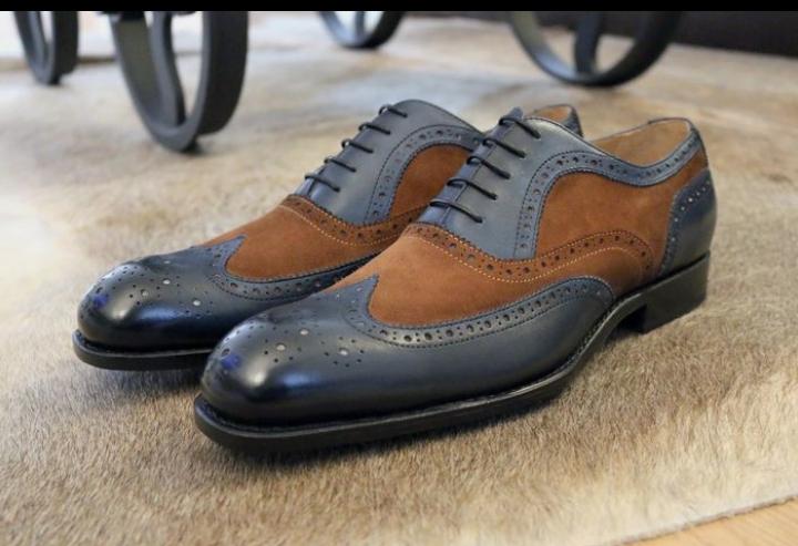 Luxury Handmade Black Brown Wingtip Brogue Leather Suede Shoes