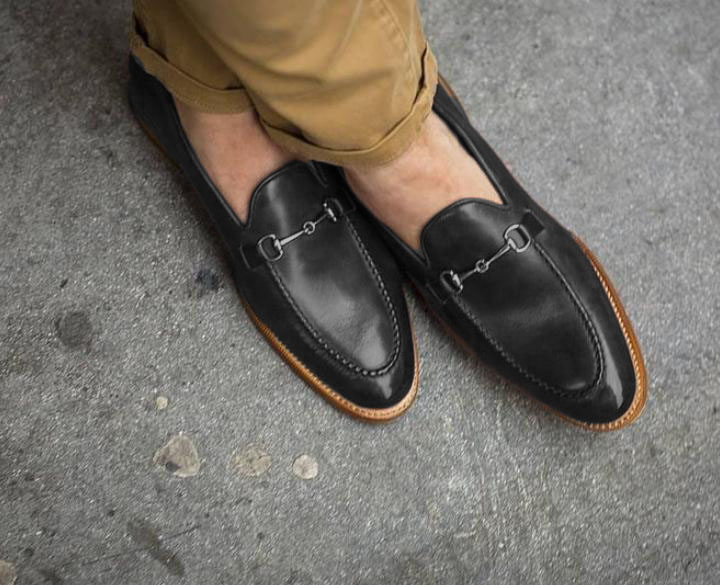 Handmade Men Adult Black Loafers Dressing Moccasins For Mens