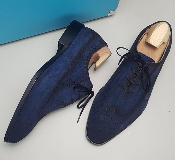 Best Stylish Navy Blue Black Tone Wingtip Brogue Suede Shoes, Men's Lace Up Dress Wear Shoes