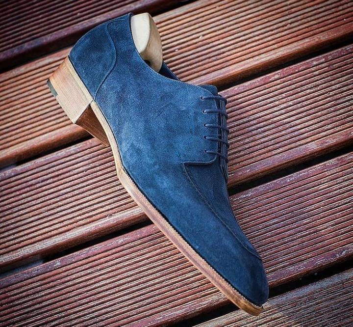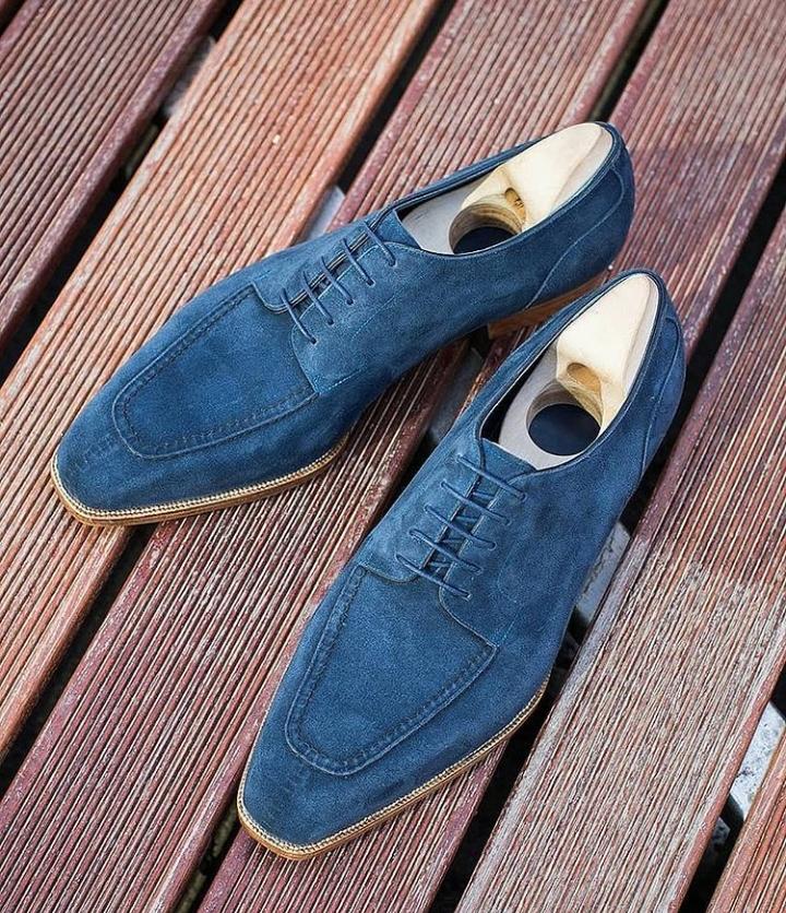 Mens Handmade navy Blue Suede Split Toe Design Formal Shoes Material: