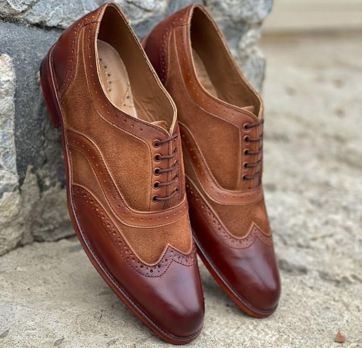 Handmade Best Brown Wingtip Leather Suede Shoes