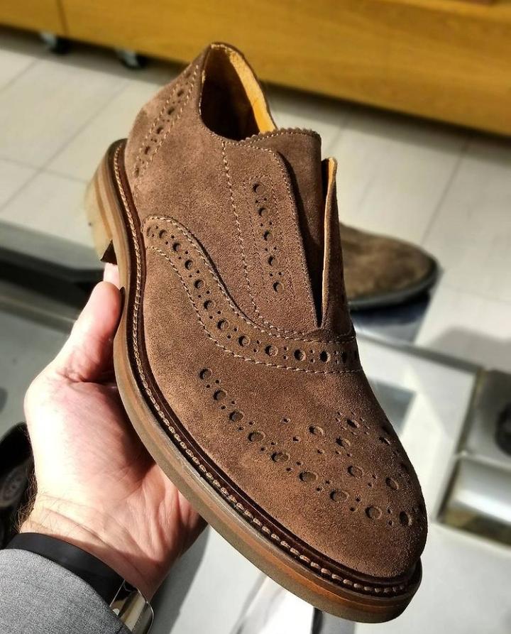 New Handmade Brown Suede Brogue Lace Up Formal Shoes