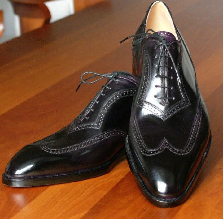 Elegant Black Pure Leather Wingtip Lace Up Wedding Shoes