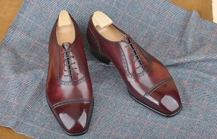 Best Sale Luxury Handmade Brown Cap Toe Leather Lace Up Wedding Shoes
