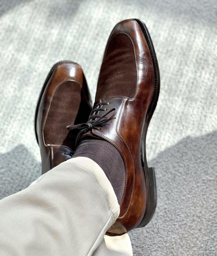 Super Hand Stitch Brown Leather Suede Lace Up Party Wear Shoes
