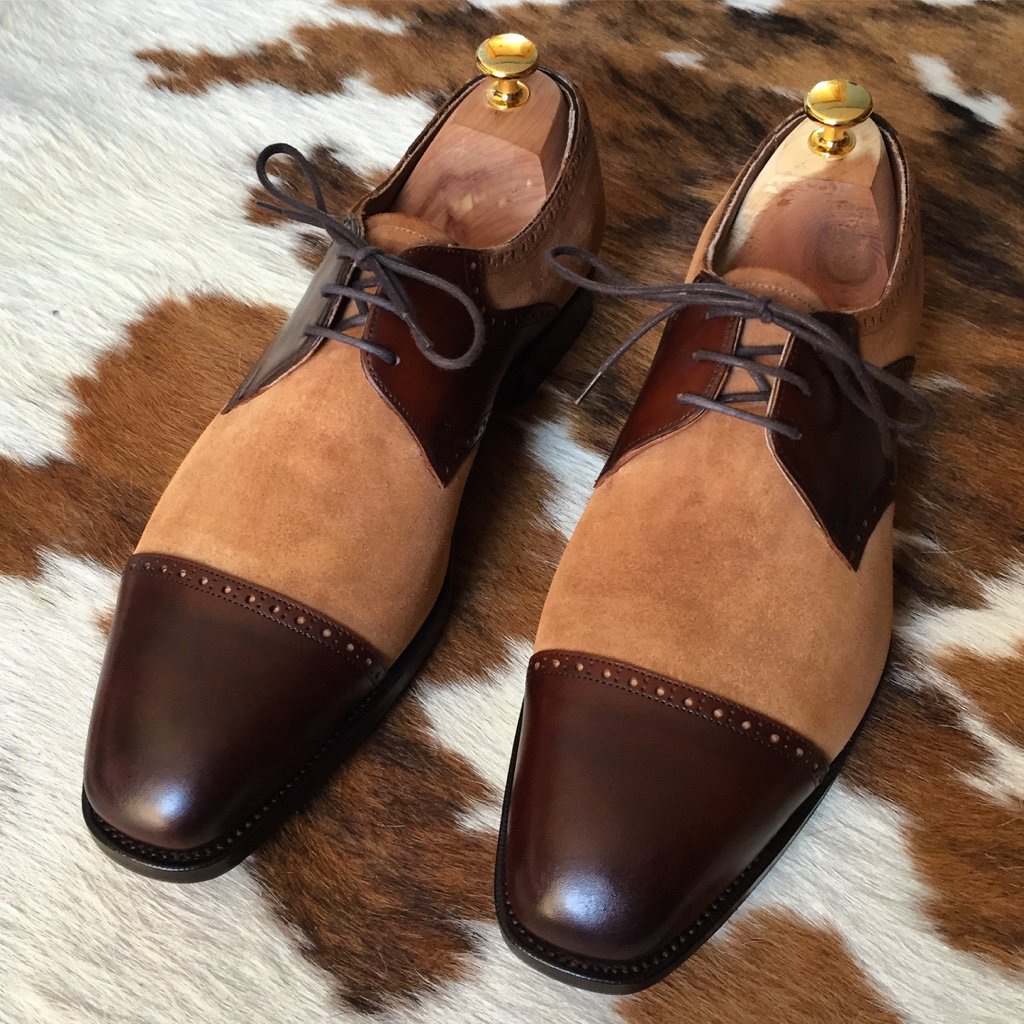 Best Handmade Two Tone Leather Suede Cap Toe Wedding Lace Up Shoes