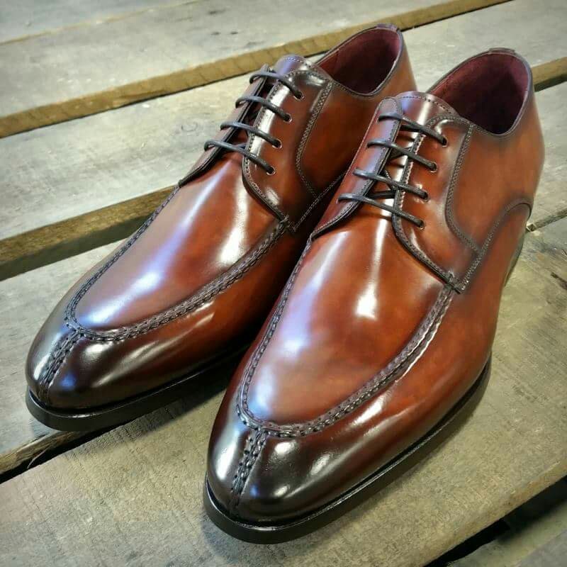 Luxury Hand Stitch Two Tone Leather Split Toe Lace Up Shoes