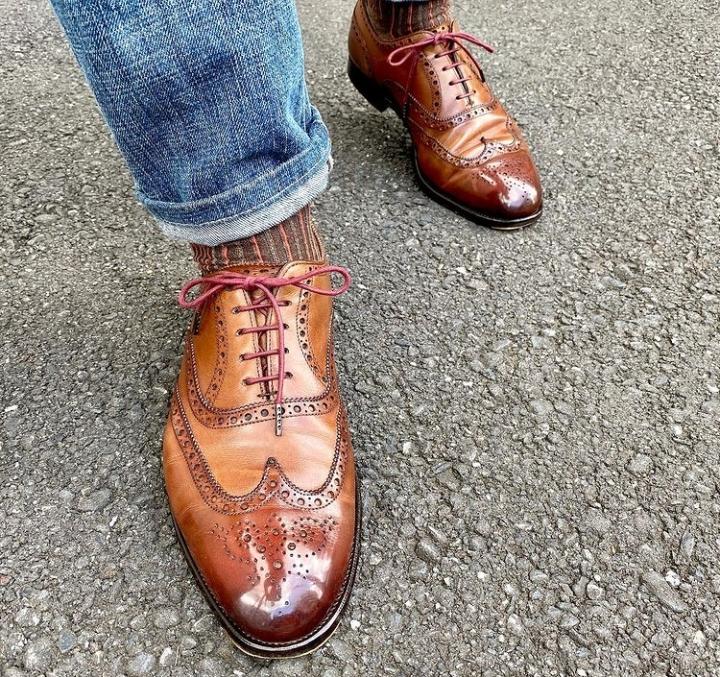 Hand Stitch Two Tone Wingtip Shoes, Men's Leather Brogue Lace Up Dress Wear Shoes