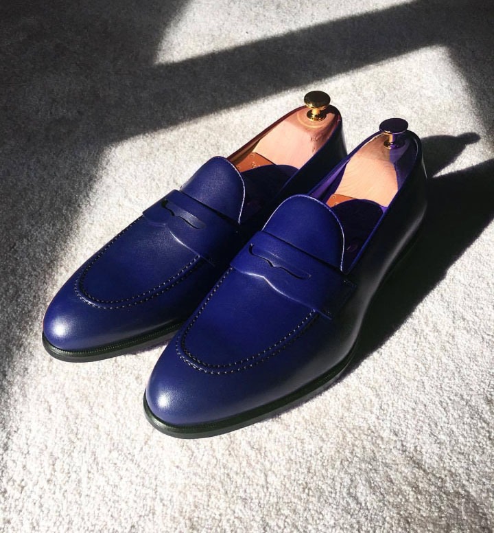 Christmas Men's Hand Stitch Navy Blue Shoes, Formal Wear Moccasin Loafer On Slips Shoes