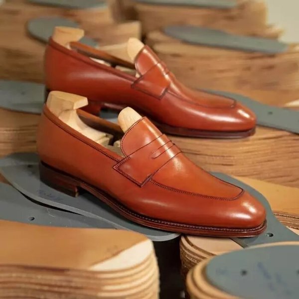 Classic Men's Brown Moccasin Leather Shoes, Handmade Loafer On Slips Formal Shoes