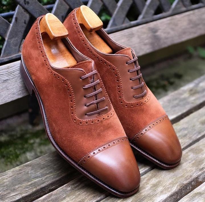 Luxury Brown Cap Toe Leather Suede Shoes, Handmade Lace Up Shoes