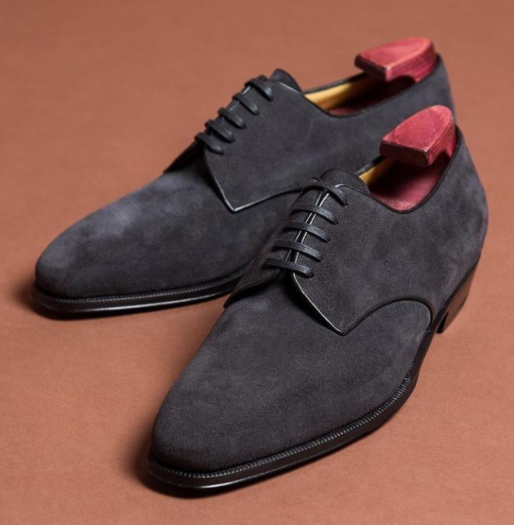 Mens Handsome Style Grey Suede Derby Formal Outfit Lace Up Shoes Handmade Edition