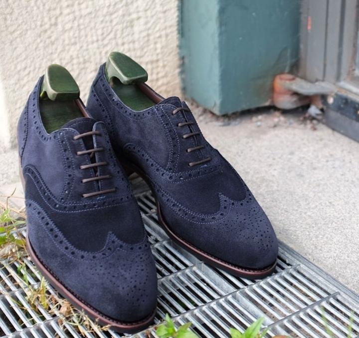 Mens Best Looking Navy Blue Suede Wingtip Design Dress Shoes Handmade Edition