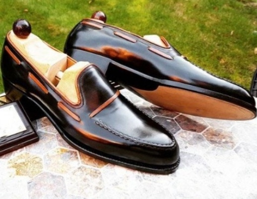 Elegant Men's Hand Stitch Leather Moccasin Shoes, Christmas Loafer On Slips Shoes
