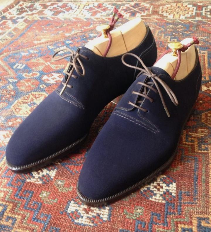 Outclass Luxurious Navy Blue Suede Lace Up Wedding Shoes
