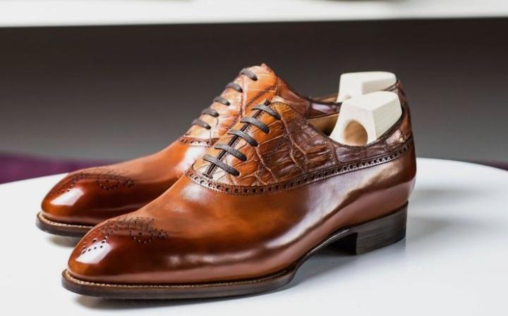 Handmade Mens Brown Decent Alligator Pattern Office Leather Laceup Shoes