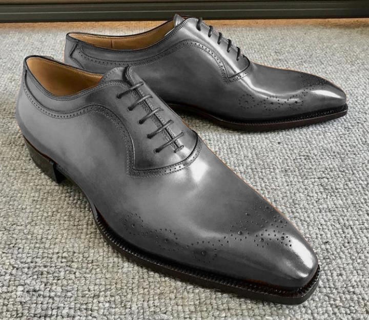 Trendy Men's Brogue Toe Grey Leather Lace Up Genuine Leather Formal Shoes