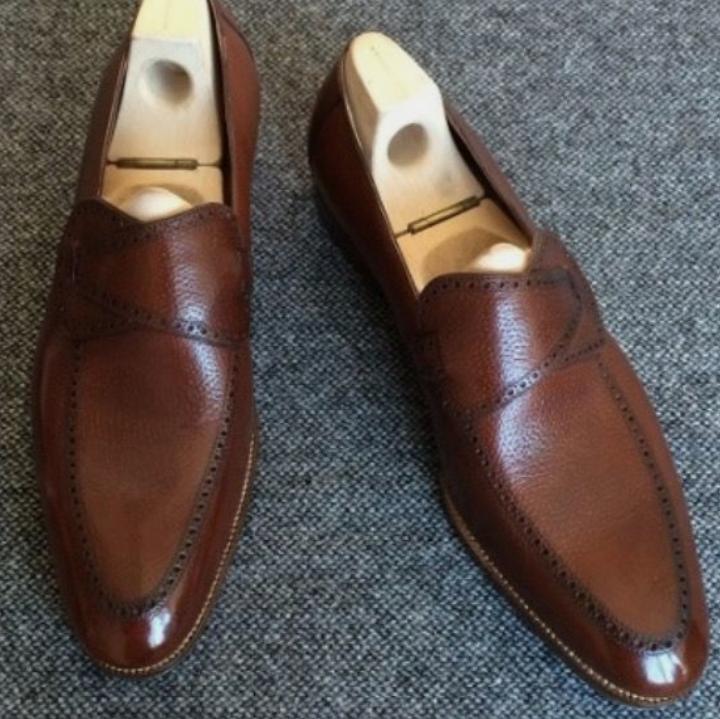 New Handmade Men's Brown Moccasin Loafer Genuine Leather Shoes