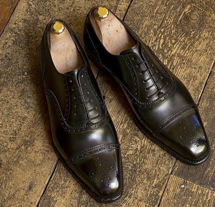men's Handmade Black Oxfords Leather lace Up Wedding Brogue Shoes