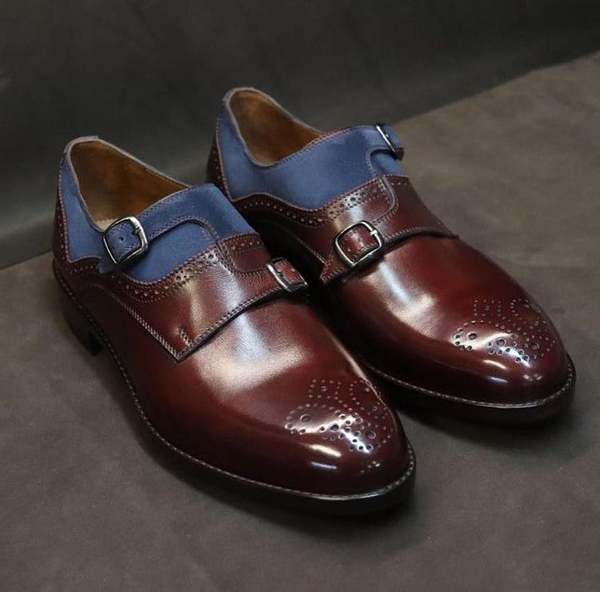 New Style Handmade Men Stylish Brogue Monk Strap Dress Shoes