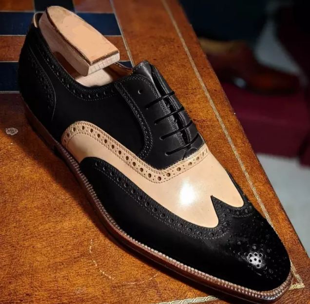 New Handmade Men's Two Tone Wingtip Brogue Lace Up Leather Shoes