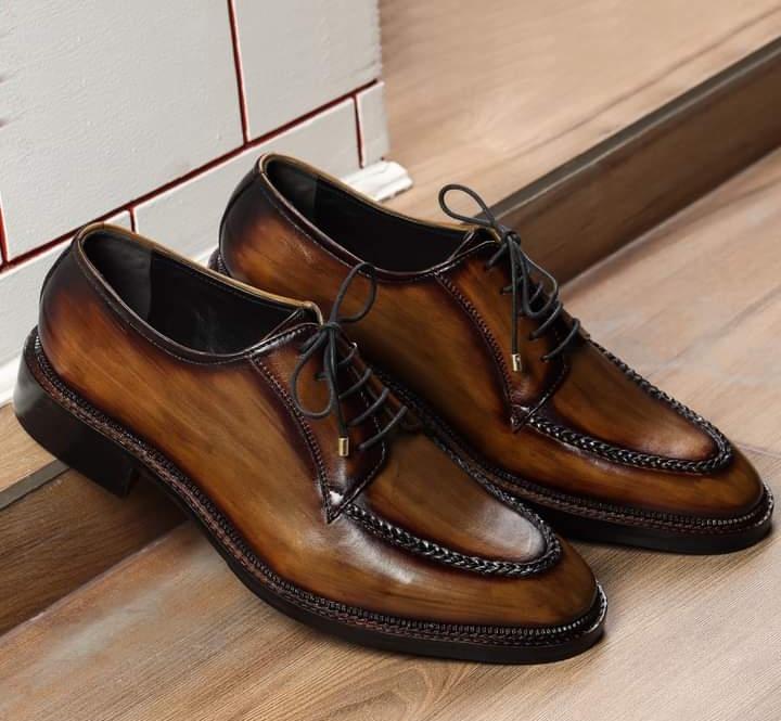 Classic Handmade Brown Black Split Leather Lace Up Formal Wear Shoes