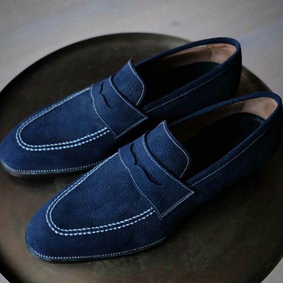 Decent Wear Men's Blue Moccasin Suede Formal Wear Shoes