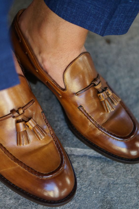 Unique Style Handmade Brown Tassels Loafer Shoes For Adults